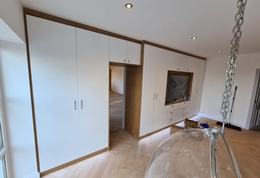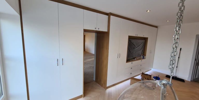 We measure, design, build and install made-to-measure cabinetry for any room. We use premium materials, keep you updated, and fit to the millimetre. Your project is scheduled, tidy and finished right — backed by our 2-year workmanship guarantee